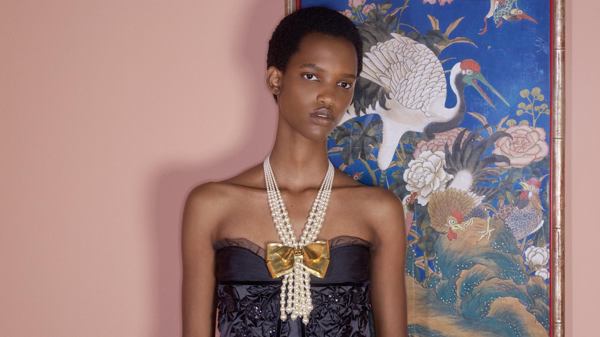 • Trop Chou Necklace in Metal, Enamel, Pearls, and Crystals