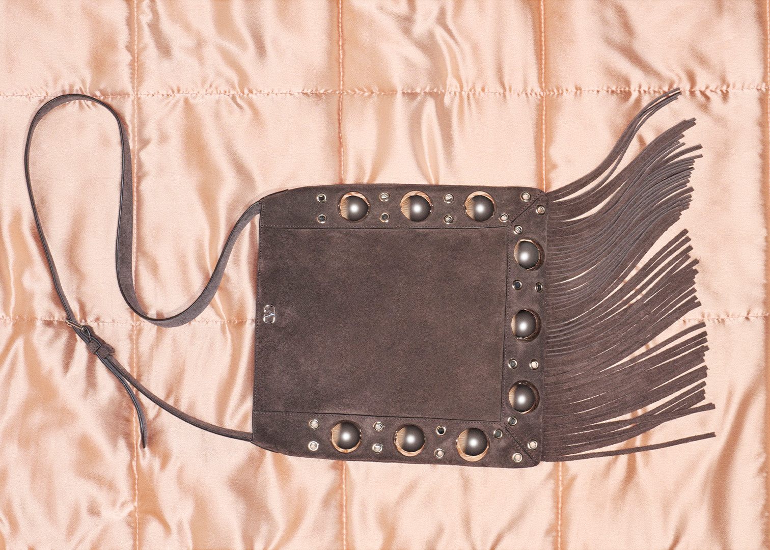 (0)The Valentino Garavani Nellcôte crossbody, tote and belt bag styles in suede accompanied by the Maison’s signature stud reveal an eclectic 60s allure.