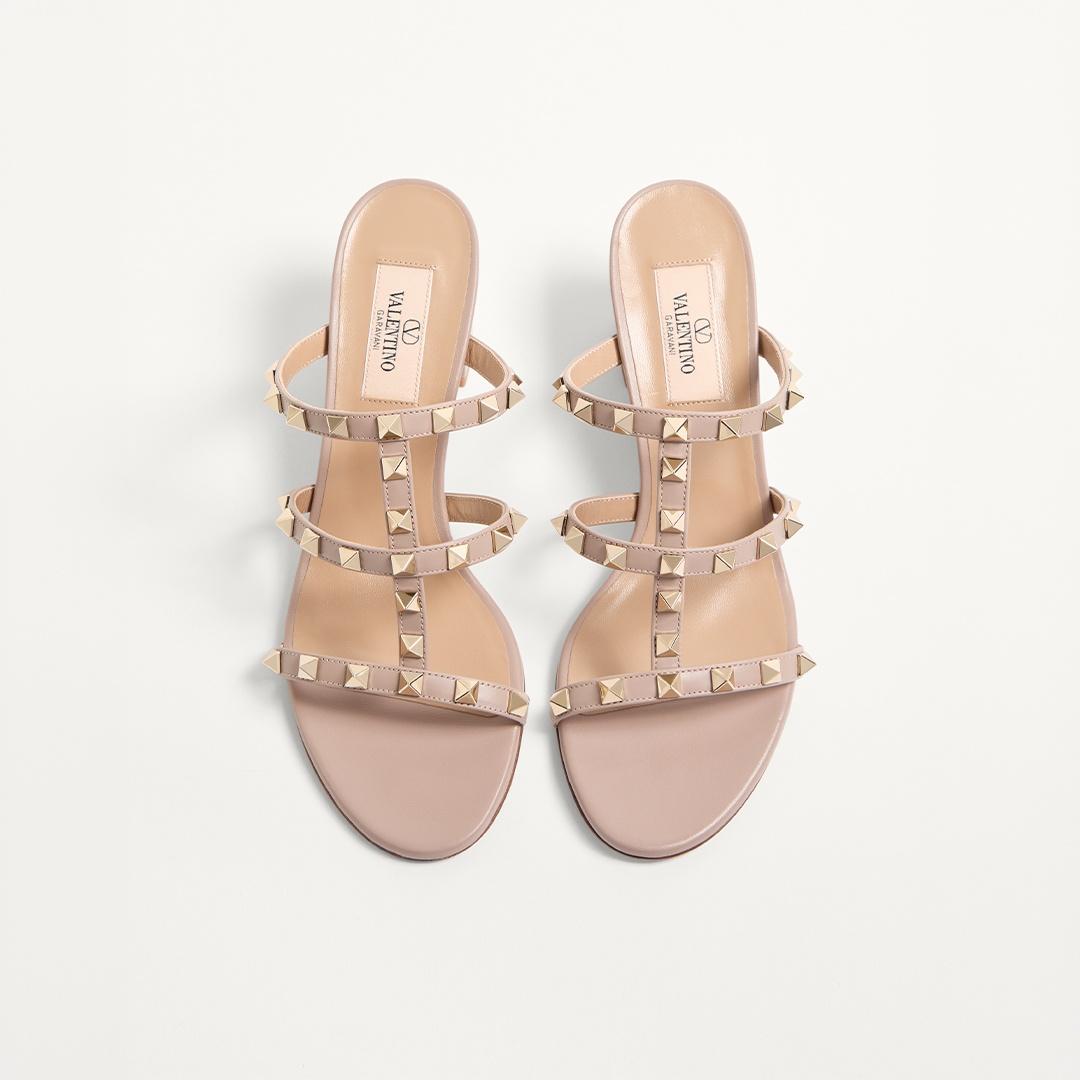 • Rockstud Slide Sandal In Laminated Nappa Leather 60Mm