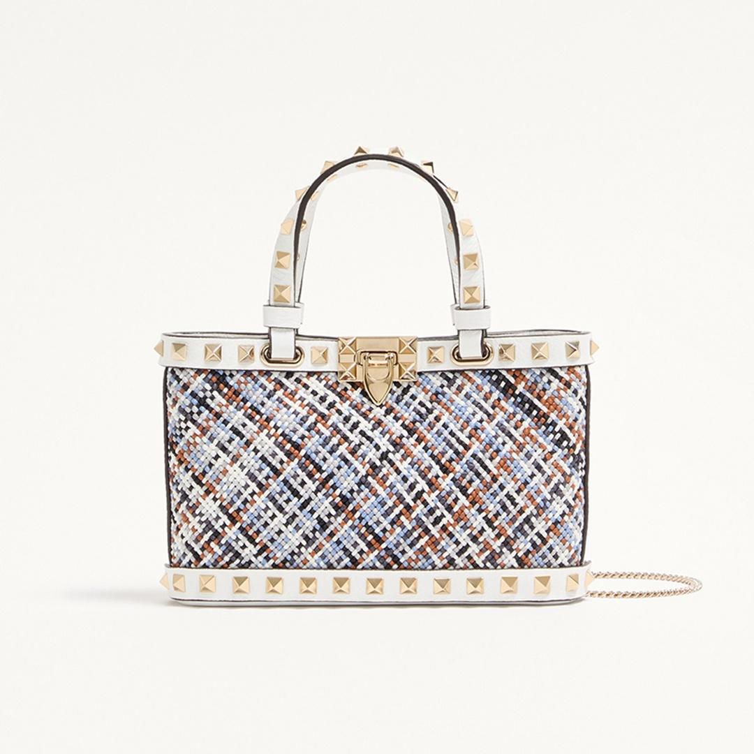 • Valentino Garavani Rockstud mini shopping bag in woven fabric.