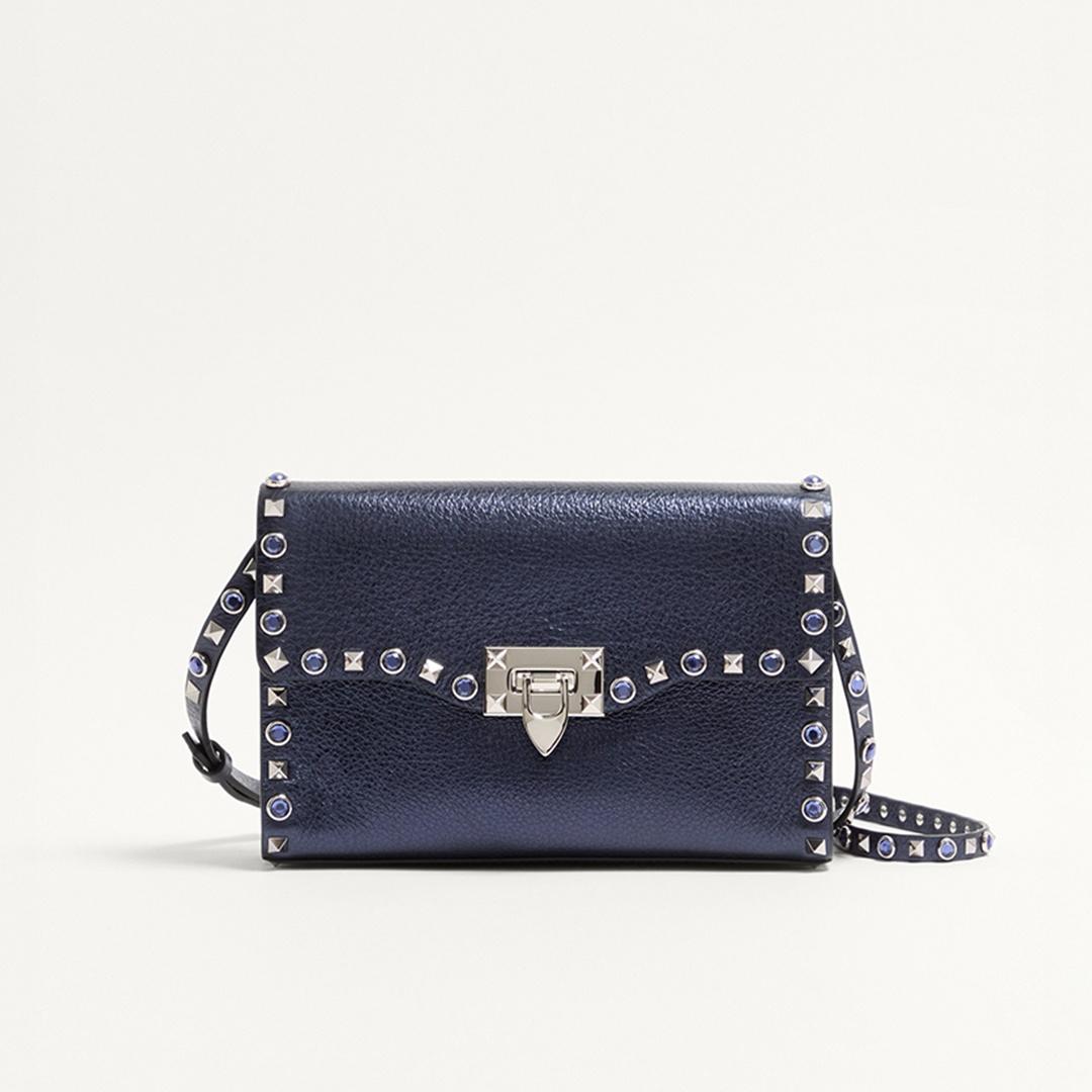 • Valentino Garavani Rockstud Small Crossbody Bag In Laminated Grainy Calfskin Leather