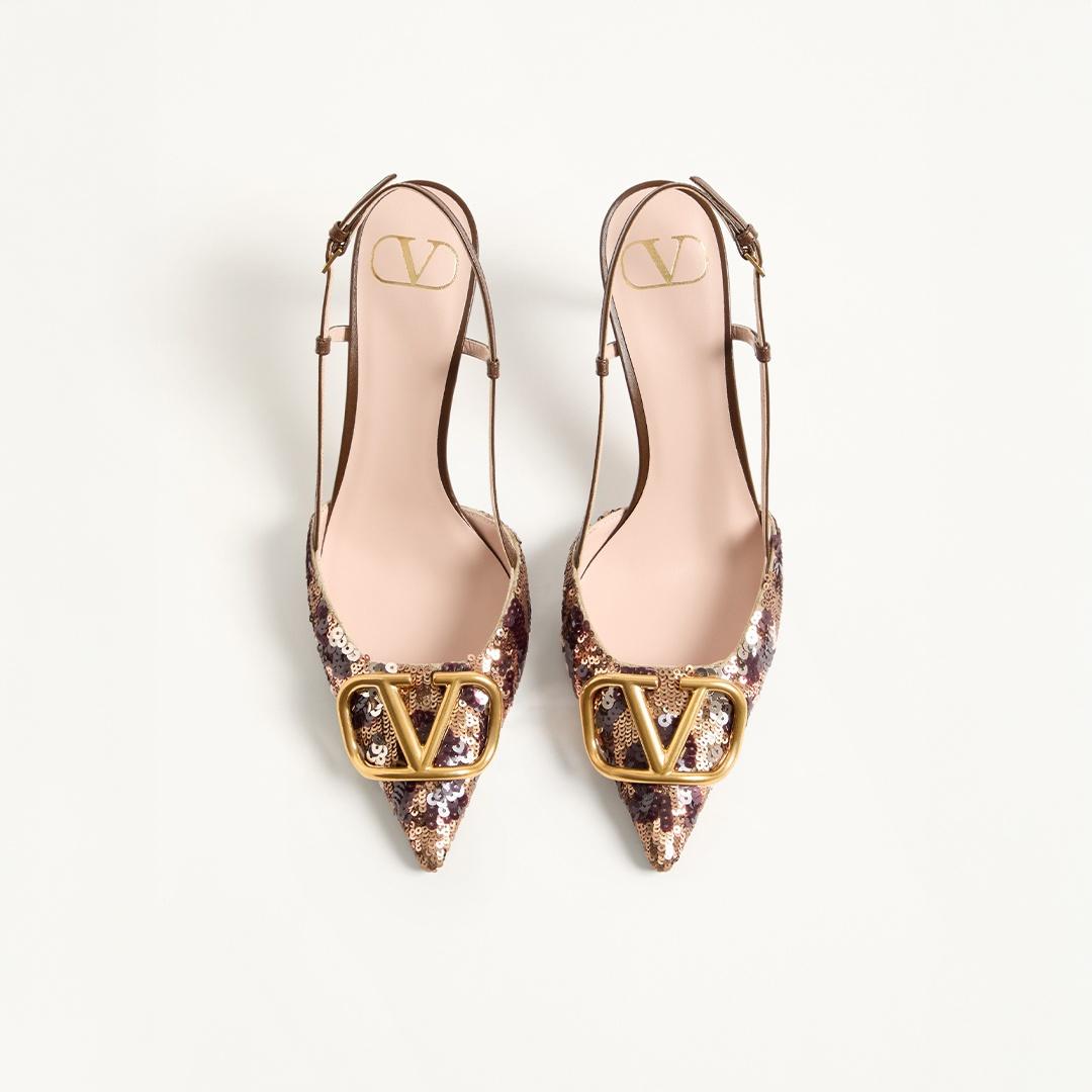 VLogo Signature Metallic Slide Sandal With Cornely Embroidery 60Mm