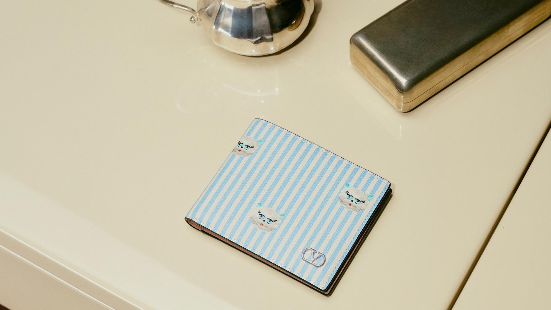 • Valentino Garavani Vlogo Signature Wallet in grainy calfskin with Le Chat De La Maison print
