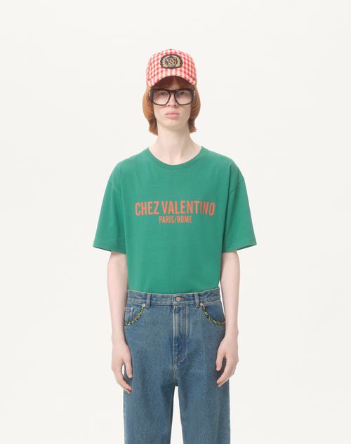 • Cotton T-Shirt With Chez Valentino Print And Patch