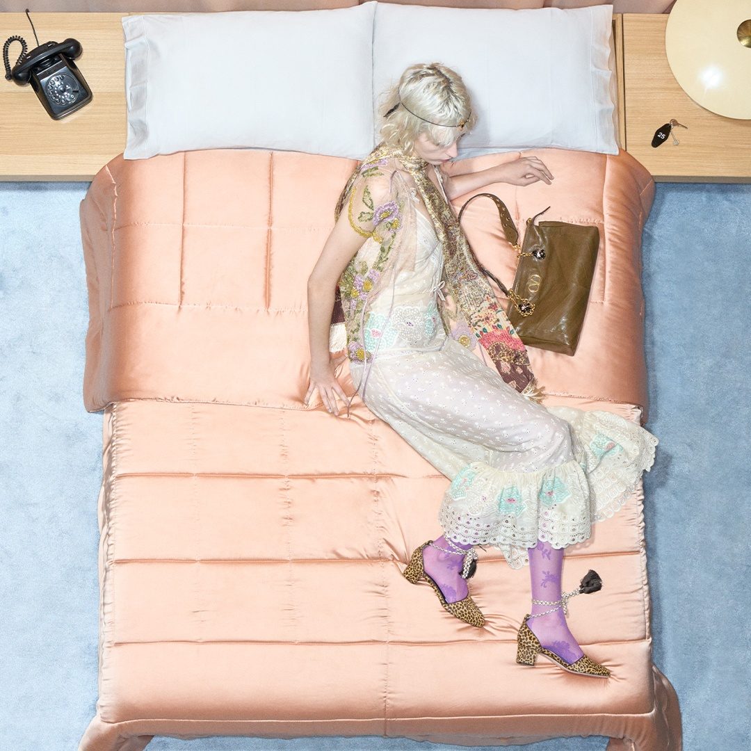 (0)Shimmering Lurex contrasts with macramé and sangallo lace, weaving together luminous surfaces and handcrafted textures that reflect the Maison’s enduring narrative.