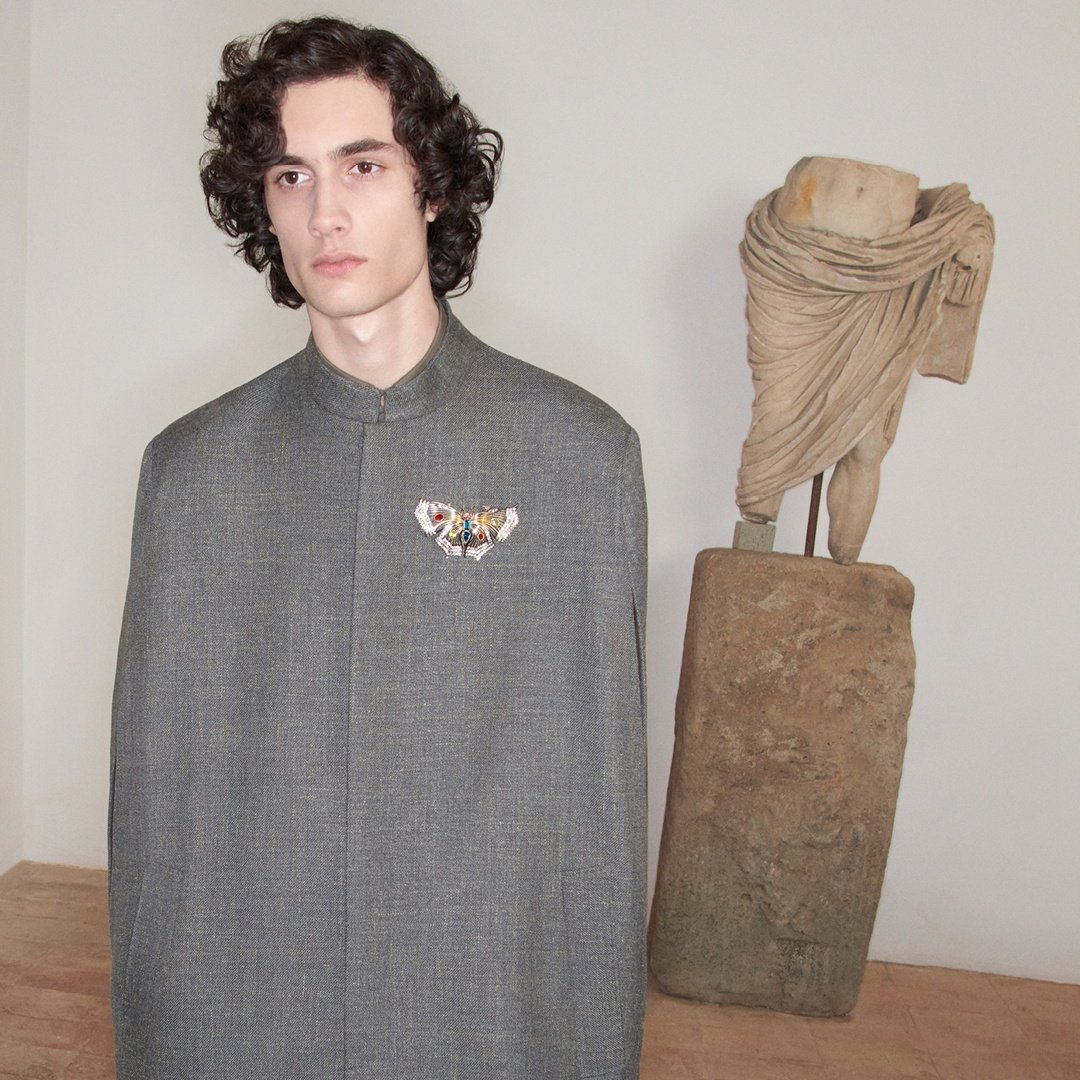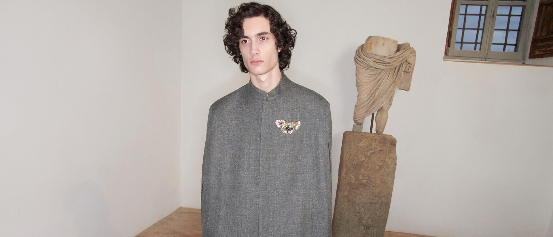 A modern men’s wardrobe unfolds through lightness and elegance. Tailored pieces meet a daywear and leisure allure through softened proportions, refined surfaces and subtle graphic accents, balancing structure with ease.