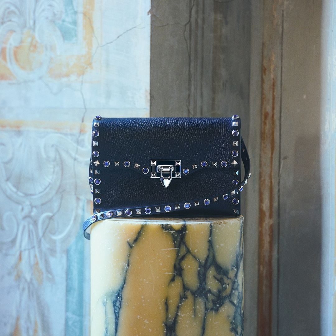 • Portefeuille À Bandoulière Chaîne Rockstud En Veau Grainé