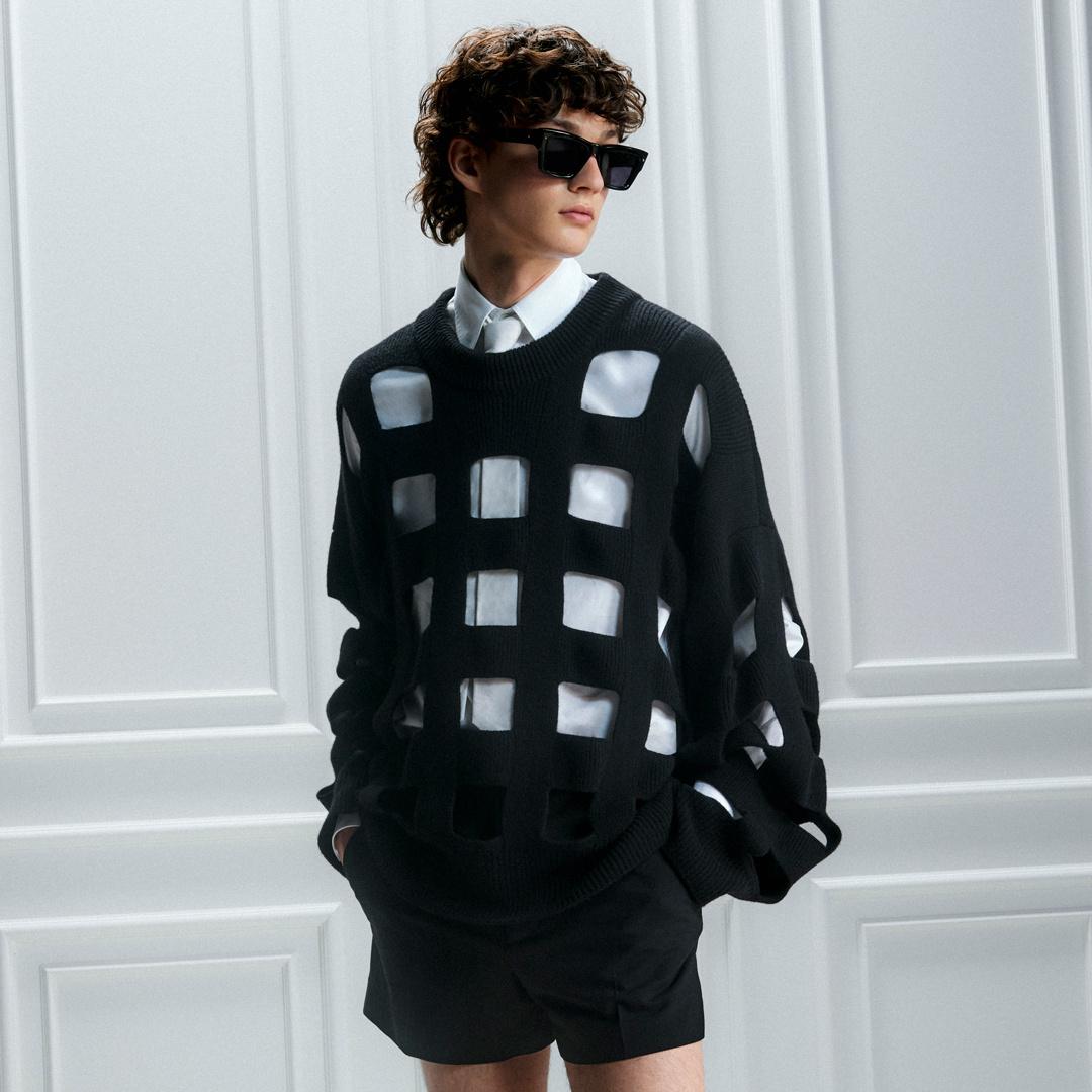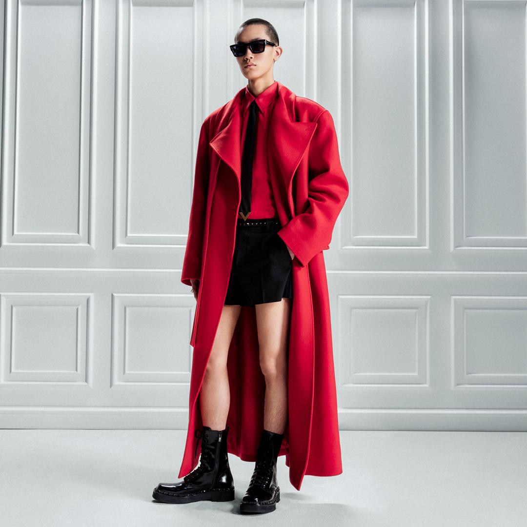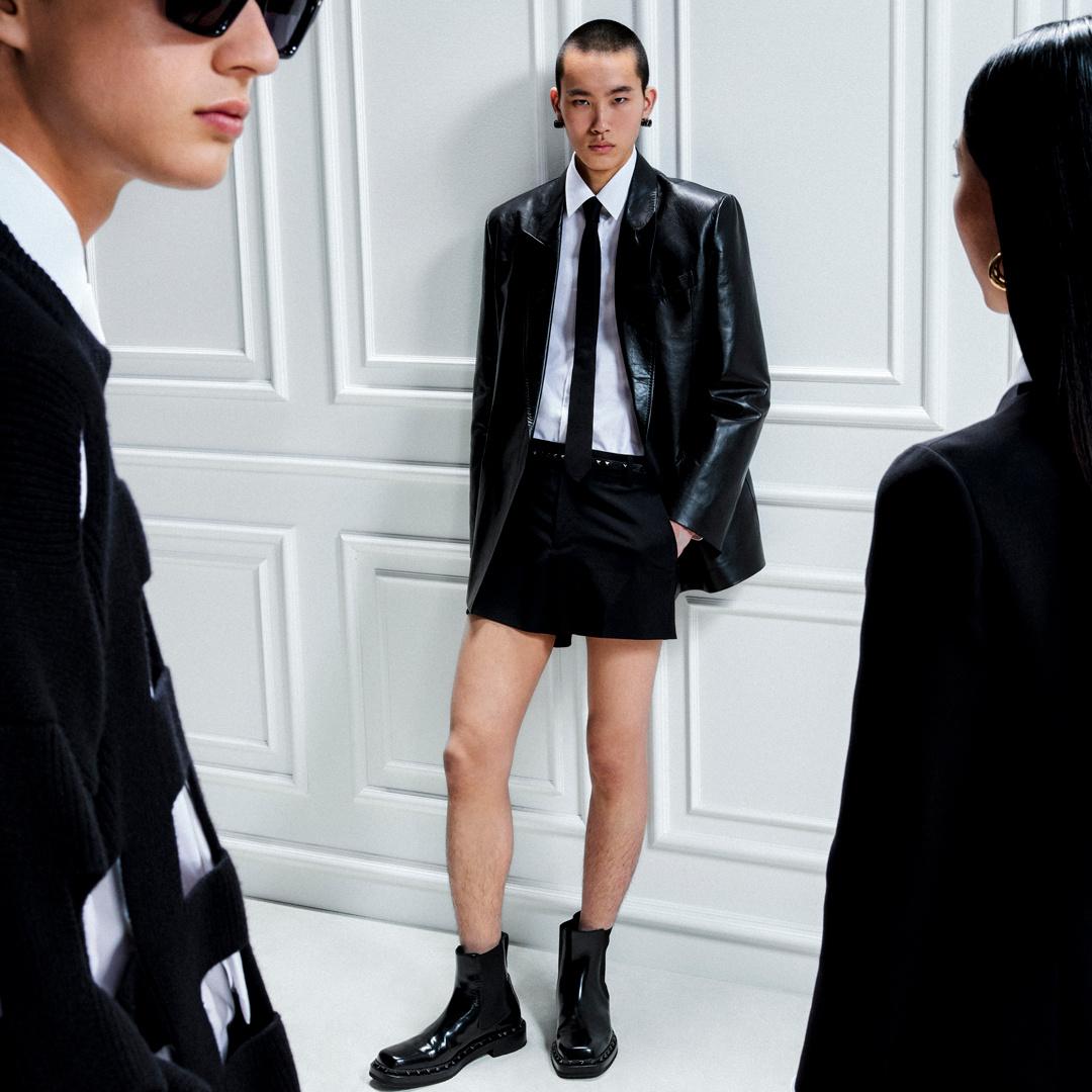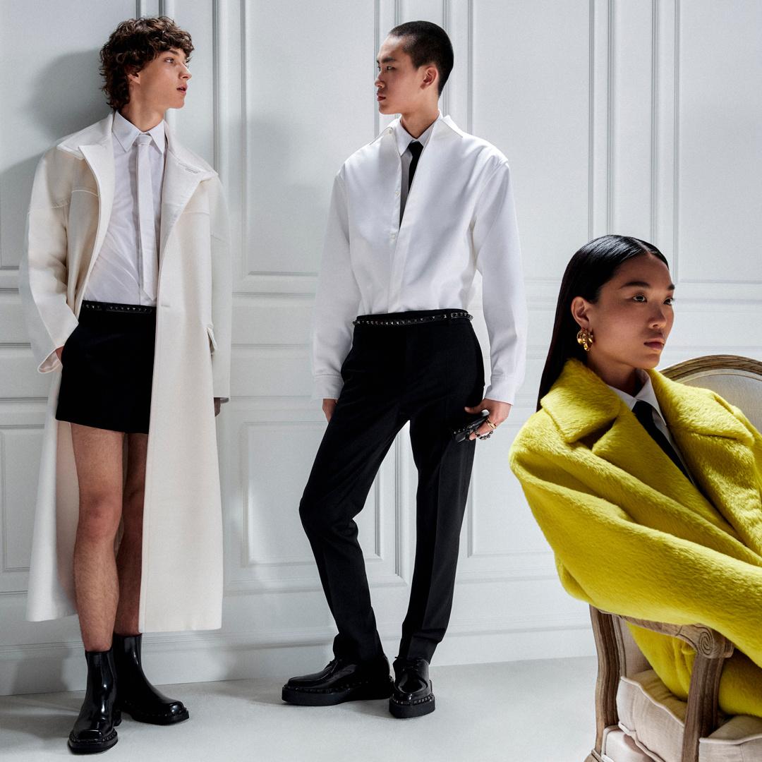 フェミニンなワードローブはミニのシルエット、質感のあるニットウェア、美しいエンブロイダリーによって生命を吹き込まれ、一方マスキュリンなワードローブはテーラードルックとタイドレスを通じて探索されています。